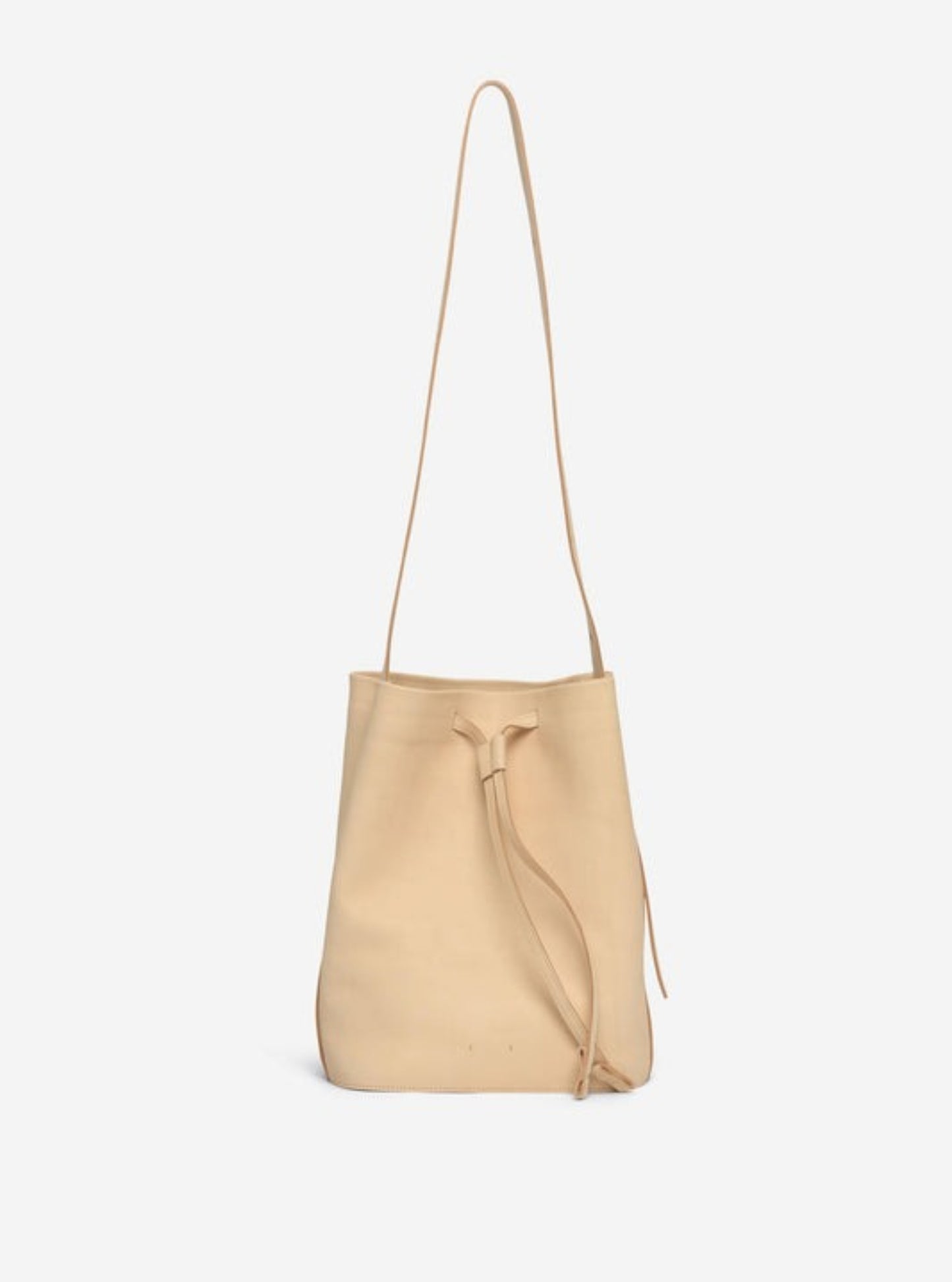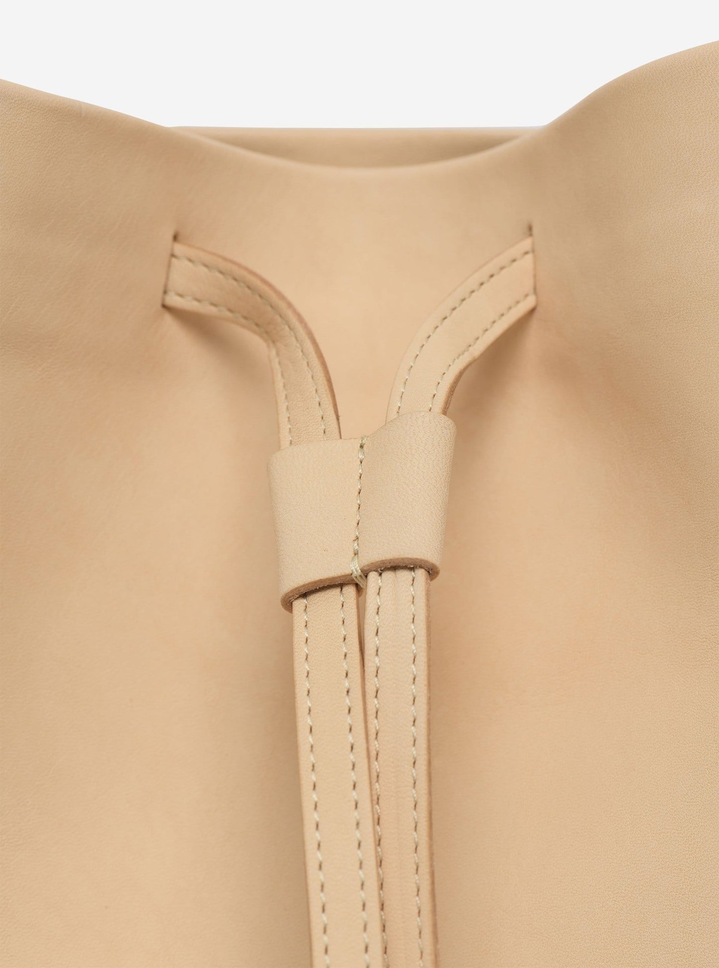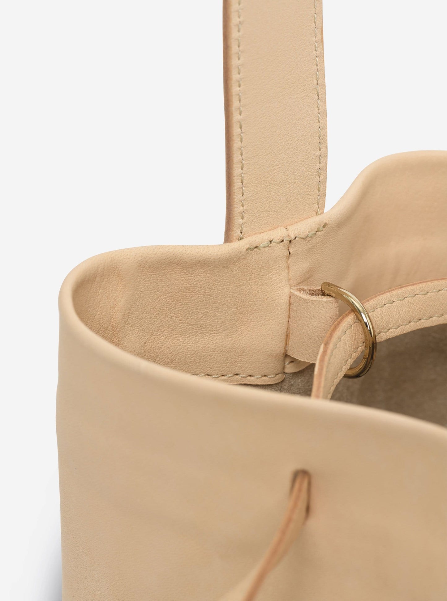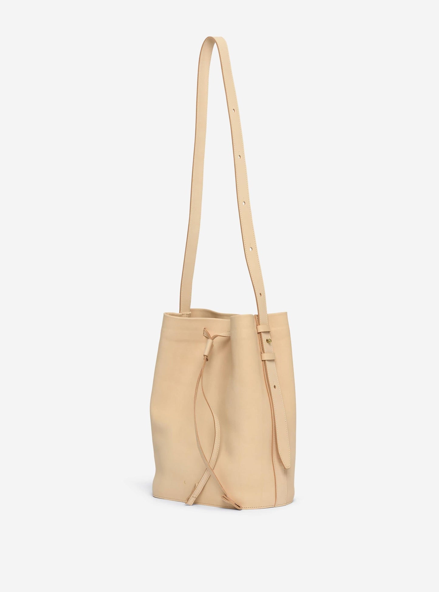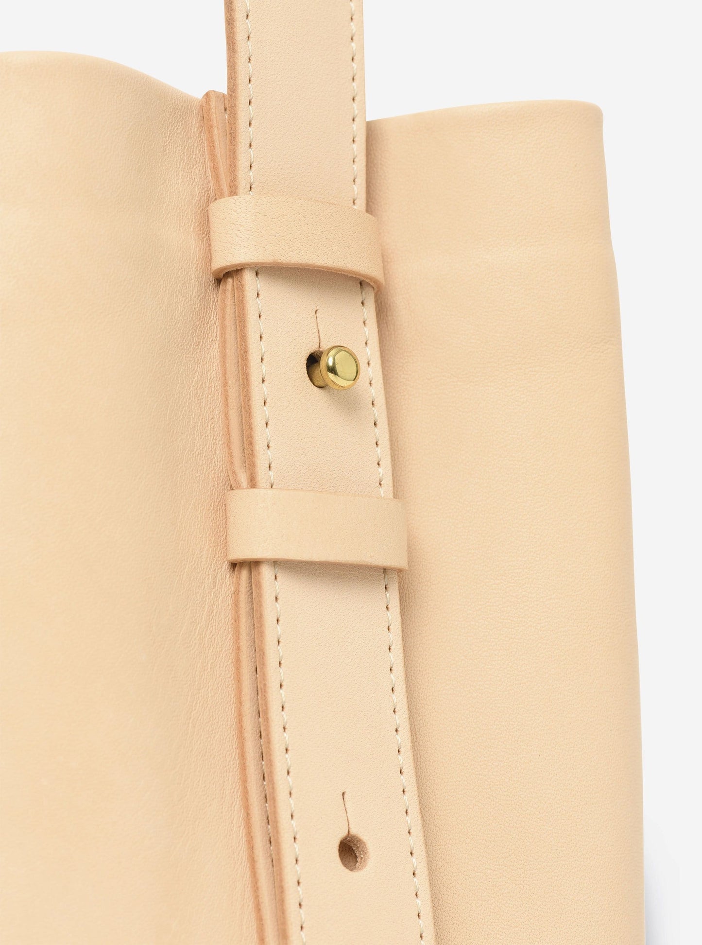 In 2014, we presented our first Bucket Bag. Since then we love this bag, its oval, infinite shape, the way it hugs the body in different ways and its lightness. So there are many reasons to keep thinking about the typology of this bag. For the AB 103.1 model, we combine a soft leather tanned in Germany as the main material and a stiffer vegetable-tanned leather from Belgium for the strap. Both leathers have been awarded the GOLD standard by the Leather Working Group and become increasingly supple over the years.