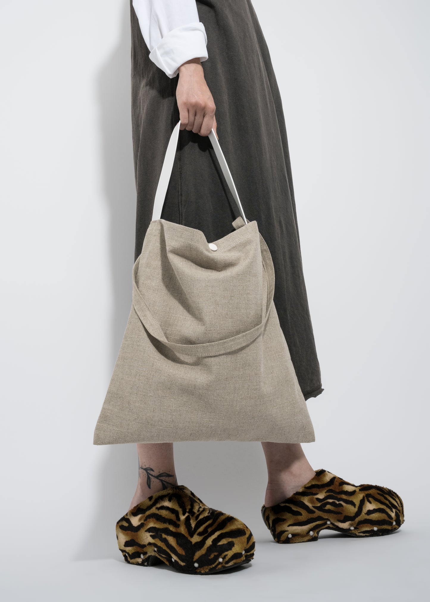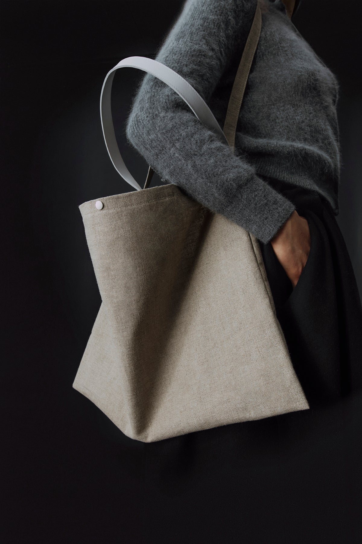 Inspired by bicycle bags Ayzit Bostan designed a minimal shape. To be carried crossbody or over one shoulder. With an inside pocket that works without a zipper but still closes well. In two different sizes and colors.