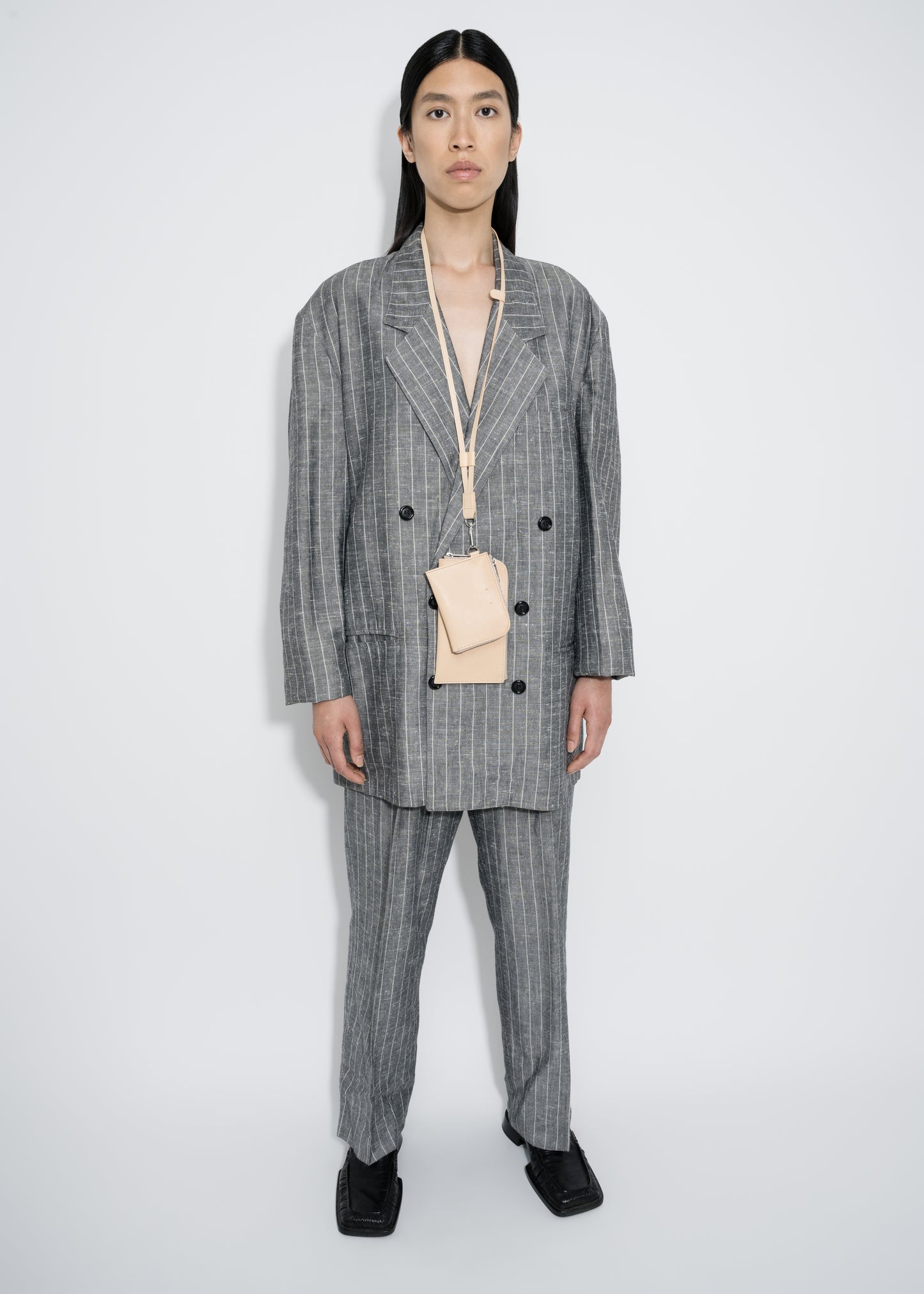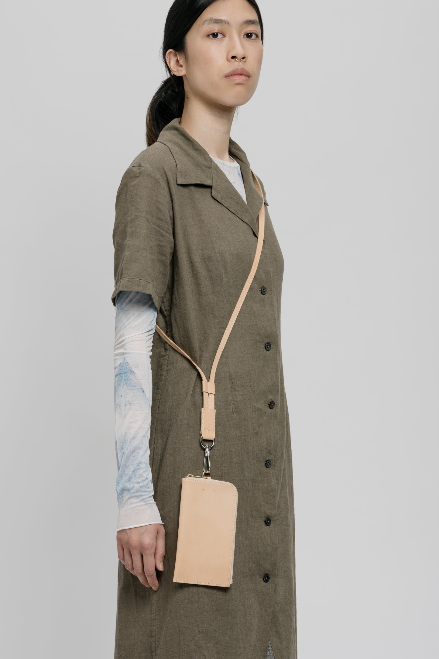 One inspiration for the ensemble of products that can be worn very close to the body is certainly the realisation that the mobile phone is moving ever closer to us in many respects. One could get the impression that it is becoming a new limb. If this is the case, we would like to offer a beautiful, restrained form that also integrates a wallet.
