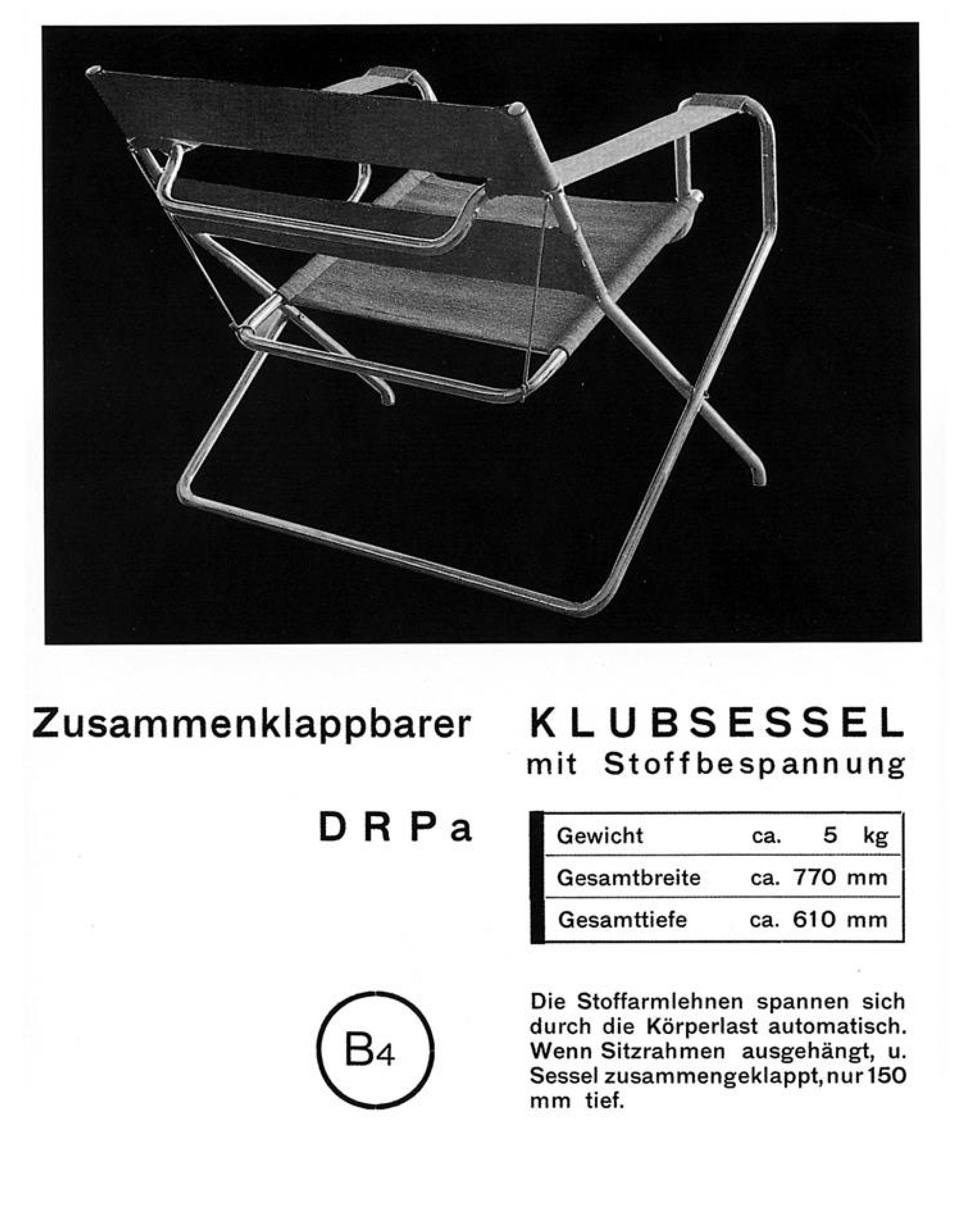 The D4 represents the ultimate reduction to essentials: foldable, easy to store, and transportable. With its economical use of tubular steel and the elimination of side straps, it is not only more material-efficient but also offers enhanced seating comfort. In 1980, the D4 was added to the permanent collection of the MoMA in New York.